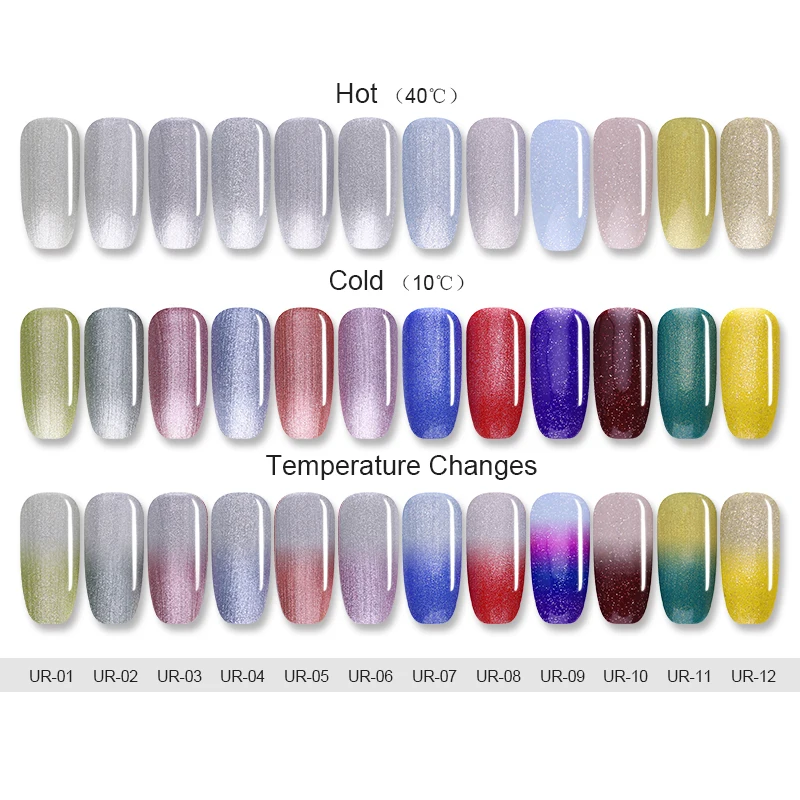 Related Product for UR SUGAR 8ml Thermal Glitter Gel Polish Temperature Color Changing Long Lasting Soak Off UV Gel Nai