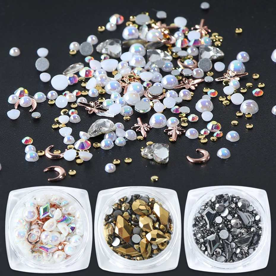 Pre-owned 1 Box 3D Multi-size Caviar Rhinestone Bead Irregular Crystal Alloy Stone Nail Studs Manicure Decoration Strass Accessories LA958Earn 20% Cash Back, VALID UNTIL TOMORROW