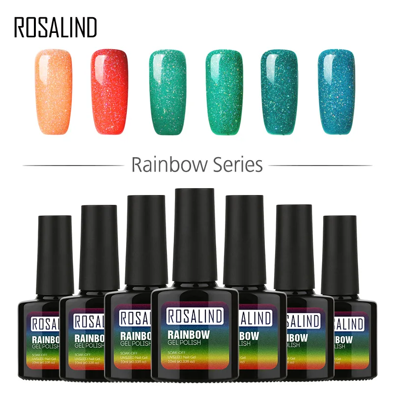 Special Offer for ROSALIND Gel 1S 10ML Rainbow R01-29 Gel Nail Polish Soak Off Semi-Permanent Nail Art UV LED Glitter