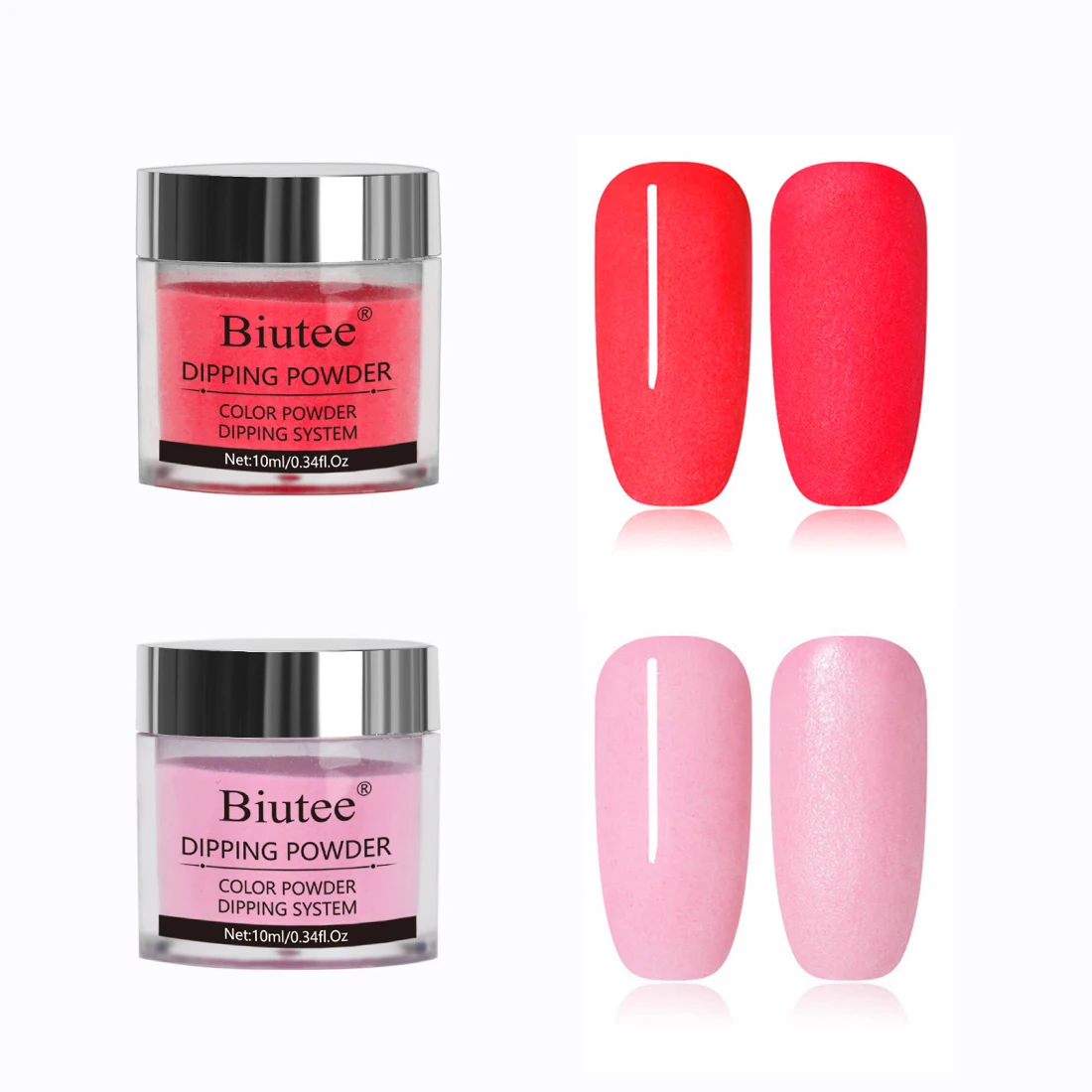 Special Offer for Biutee 10ml/box Clear Natural Dark Pink Dip Powder Holographic Dip Nail Powders Long-lasting No UV