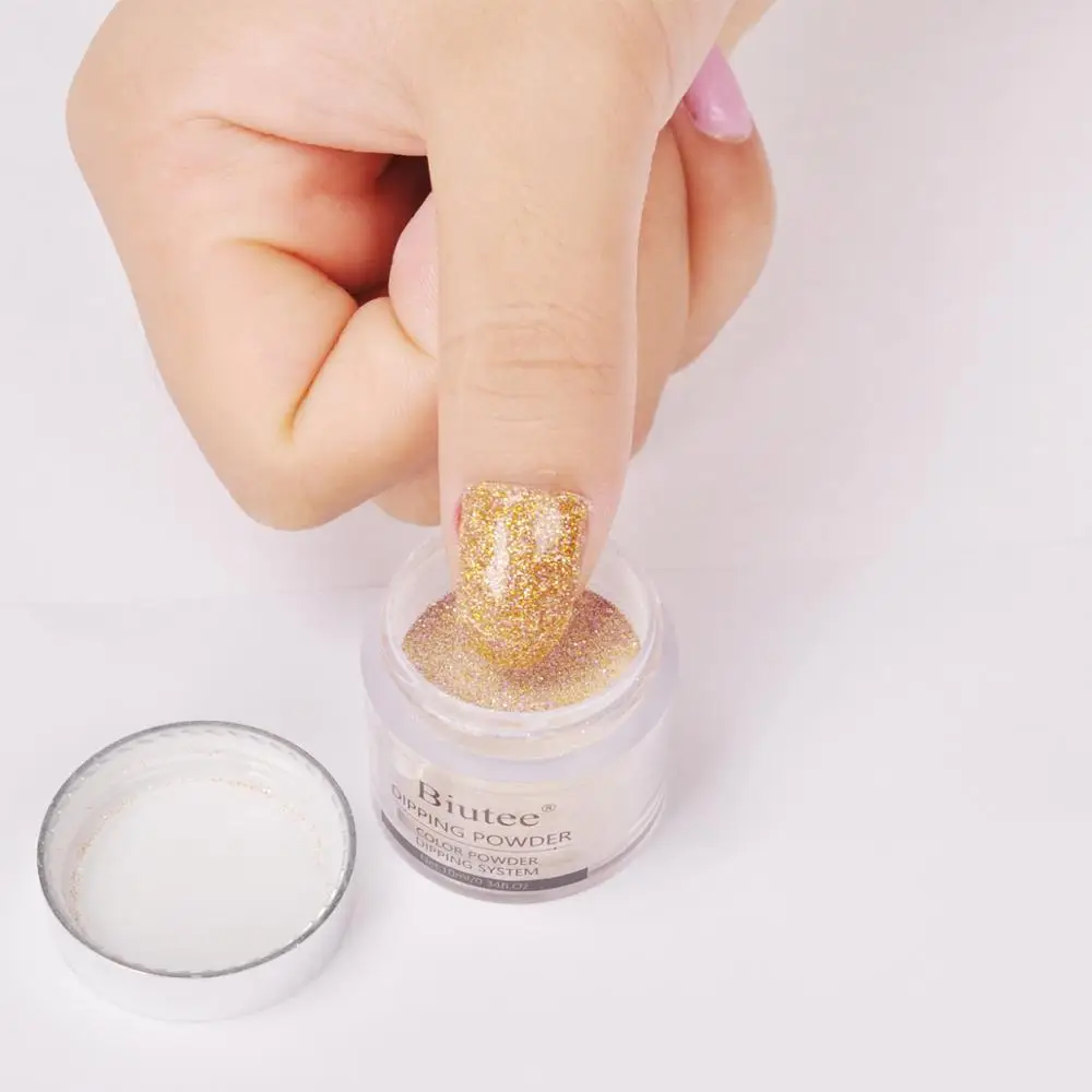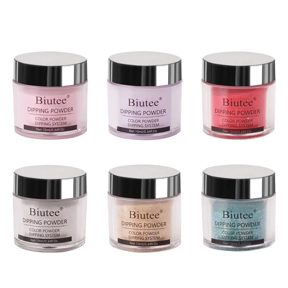 .image of Biutee 10ml/box Clear Natural Dark Pink Dip Powder Holographic Dip Nail Powders Long-lasting No UV