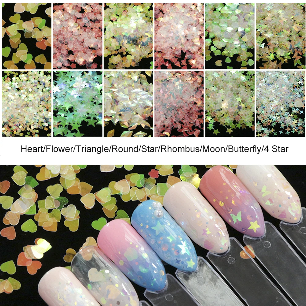 Related Product for 12 Designs Dazzling Clear Glitter Nail Sequins Holographic Heart/Triangle/Round DIY Paillette Box N