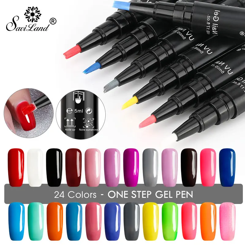 SAVILAND Macaron 28 Colors Gel Nail Varnish Pen Newest Glitter Soak Off Nail Polish Primer Top Coat Dawdler UV Nail Art Tools