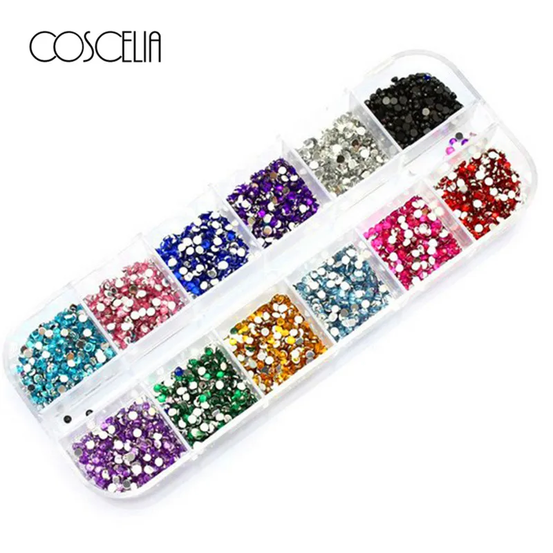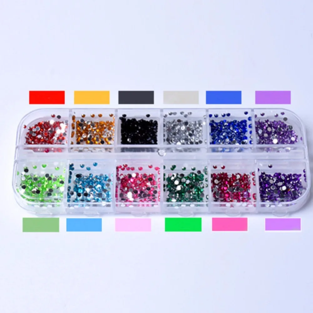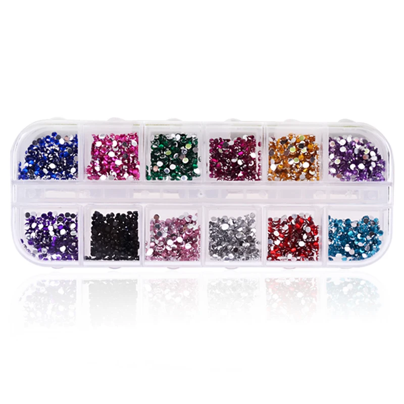 .image of New Mix 12 Color 2mm Circle Beads Nail Art Tips Rhinestones Glitters Nail Supplies Acrylic UV Gel G