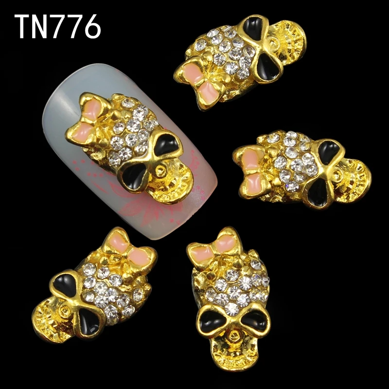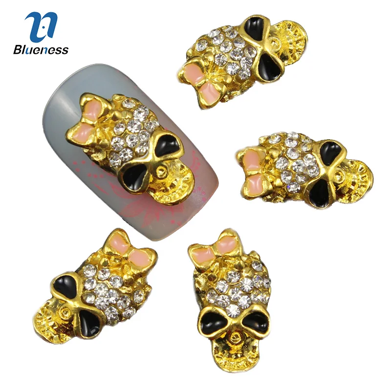 Limited Price for Blueness 10 Pcs Gold Alloy Skull Halloween 3D Nail Art Decorations Glitter Rhinestones Manicure Ske